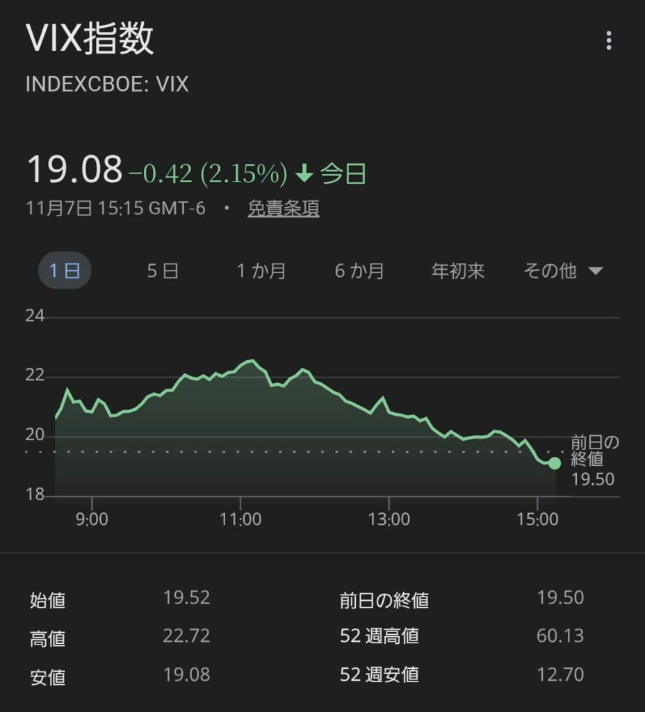 | VIX指数 | 19.08 (-2.15%下落) | 市場の不安心理は低下傾向 ⬇️(リスクオンムードに寄与) |