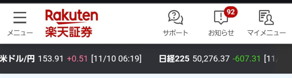 米ドル/円レートが153.91円と前日比+0.51円の円安方向に動いたため、外貨建て資産は円換算でプラスとなりました。為替の恩恵をしっかりと受けています。