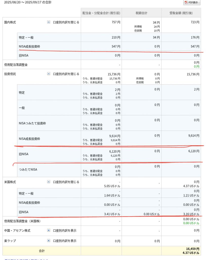 NISA口座は非課税となり、配当金にも本来かかる税金がかかりません。非課税最高です。