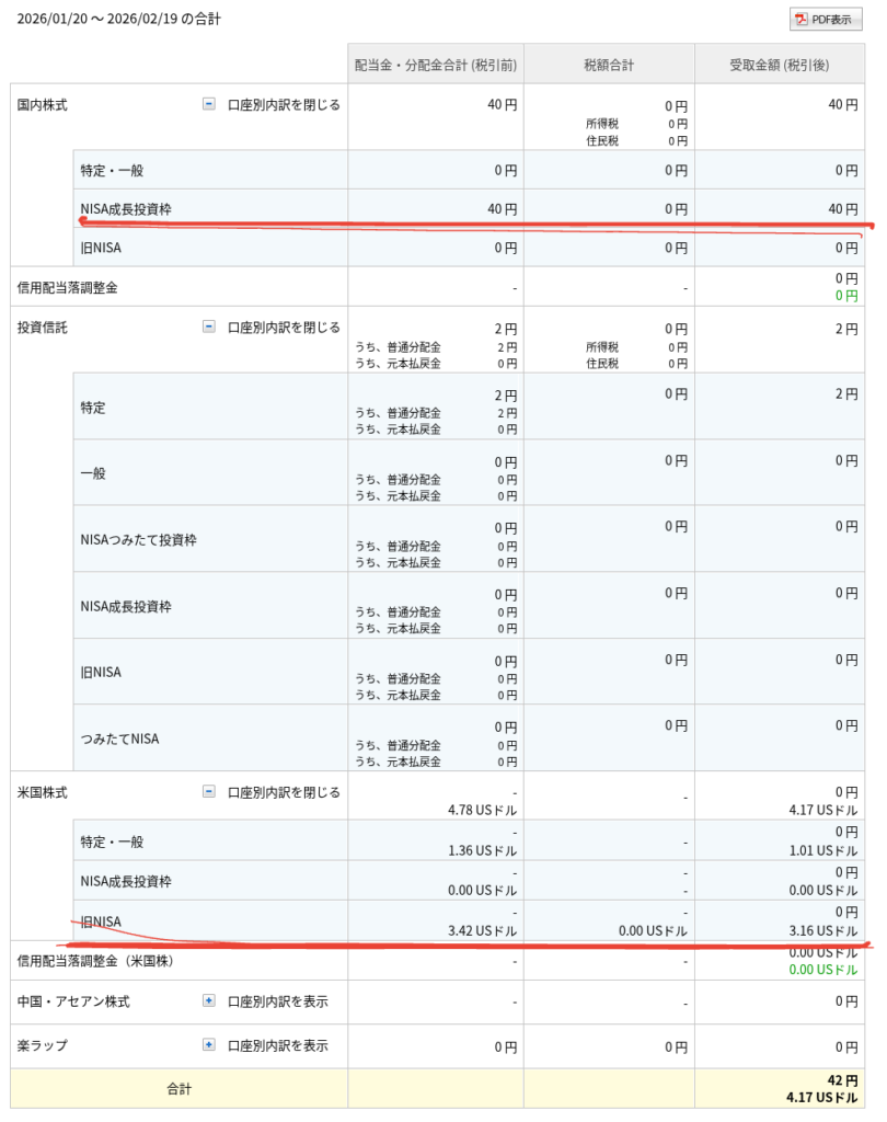 • ドル資産の安定感 ⬆️:米ドルで4ドル強(現在のレートで約600円〜700円相当)の入金。日本円の42円と合わせれば、今月はランチ一回分、あるいは喉を潤すコーヒー数杯分を「資産が稼いでくれた」ことになります。