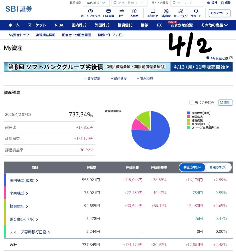 私のポートフォリオ運用状況をご覧いただきありがとうございます。