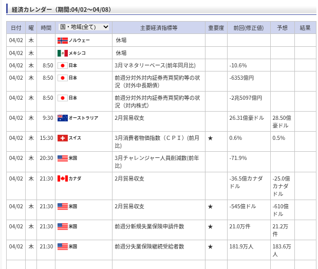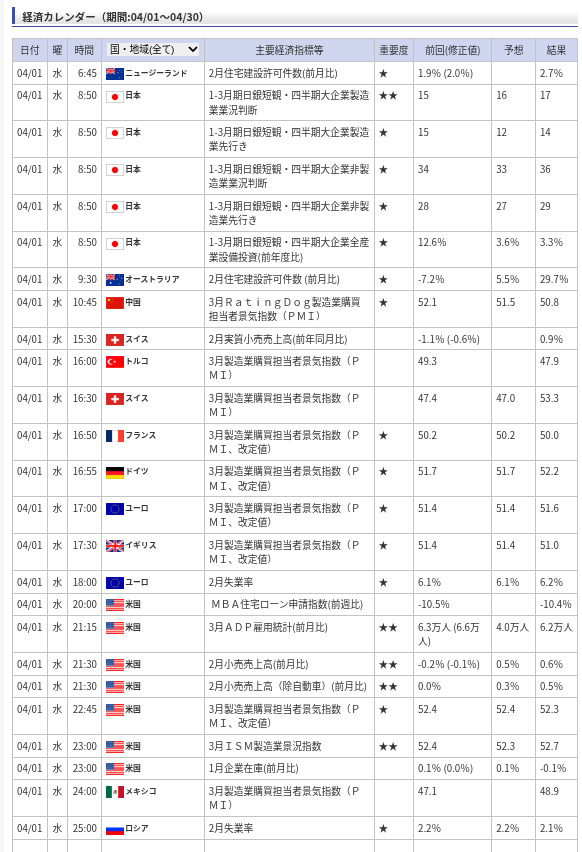 4月1日の指標は、**「日本の非製造業の力強さ」と「米欧の異なるインフレ動向」**が浮き彫りとなりました。 日本は短観の結果を受け、景気の先行きに対する自信を深める内容でした。米国は雇用が非常に強い一方で、サービス業の景況感にわずかな陰りが見え始めています。欧州はインフレ鈍化が鮮明であり、世界的に金融政策の方向性が分かれつつある過渡期といえます。投資戦略としては、米国の雇用情勢を注視しつつ、好調な日本の非製造業セクターへの注目を維持すべき局面です。