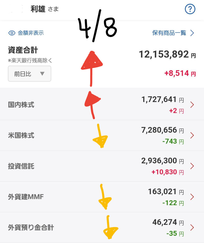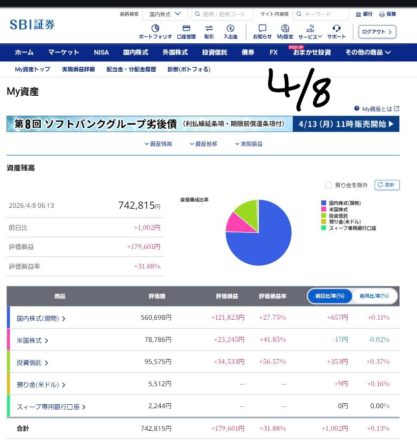 📈 今日の資産評価額と相場観測(2026/04/08)