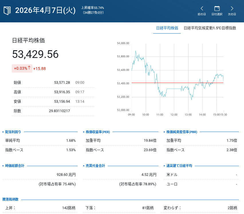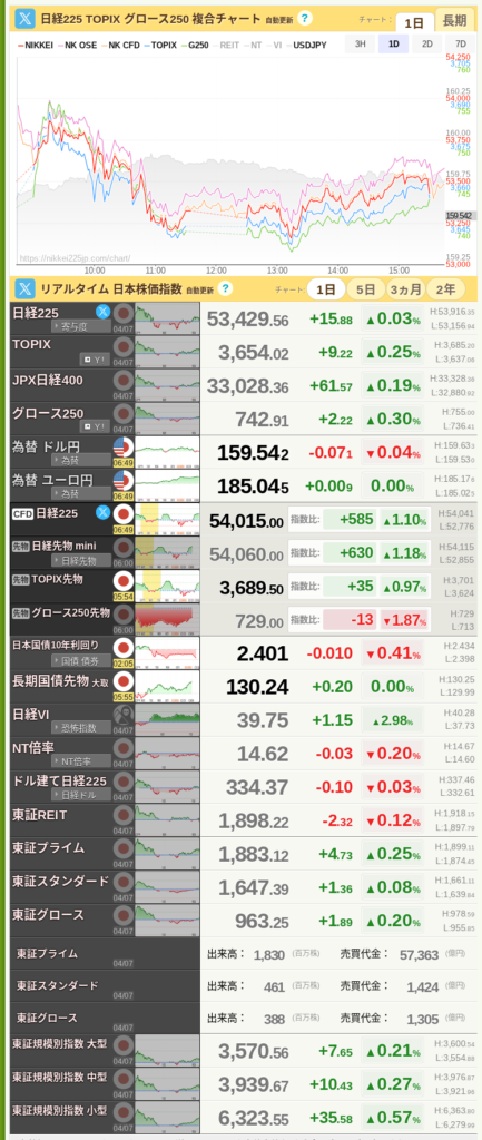 日経平均(現物)53,429.56 円➡︎ +15.88円昨日は耐えましたが、先物は急落しています。