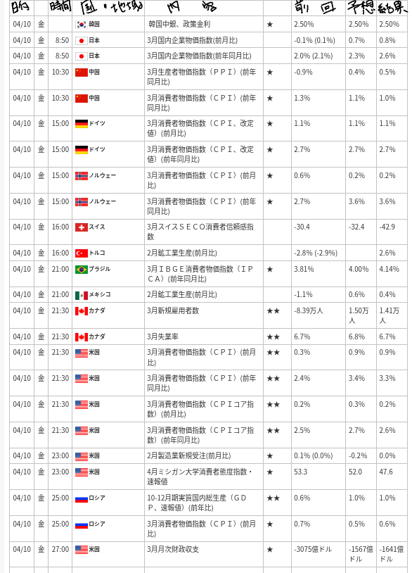 - ※注:現物市場は月曜朝の寄付前のめ、前営業日(4/10)の終値が表示されています。