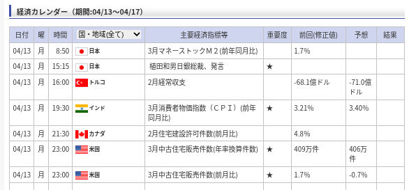【データ基準時刻】 2026年4月13日 :06:58 ~ 07:11