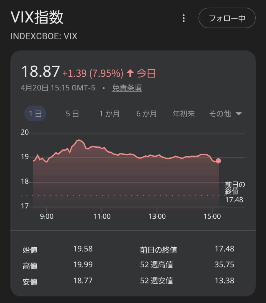 - indexcboe: VIX指数: 19.30(前日比: ⬇️ -4.93% )