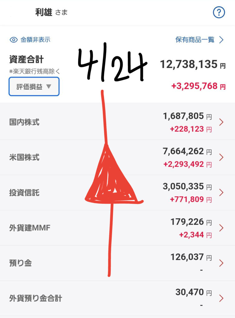 いつも私の運用状況を見に来てくださり、ありがとうございます。4月23日から24日にかけて、マーケットはまさに「嵐」のような展開となりました。特に日本時間の深夜2時から3時にかけて、米国市場で起きたパニック的な急落は、多くの投資家にとって試練の時となったはずです。私自身の資産もその荒波にさらされました。現在のリアルな状況と、この局面をどう乗り越えるべきか、最新のデータをもとに詳しく解説します。