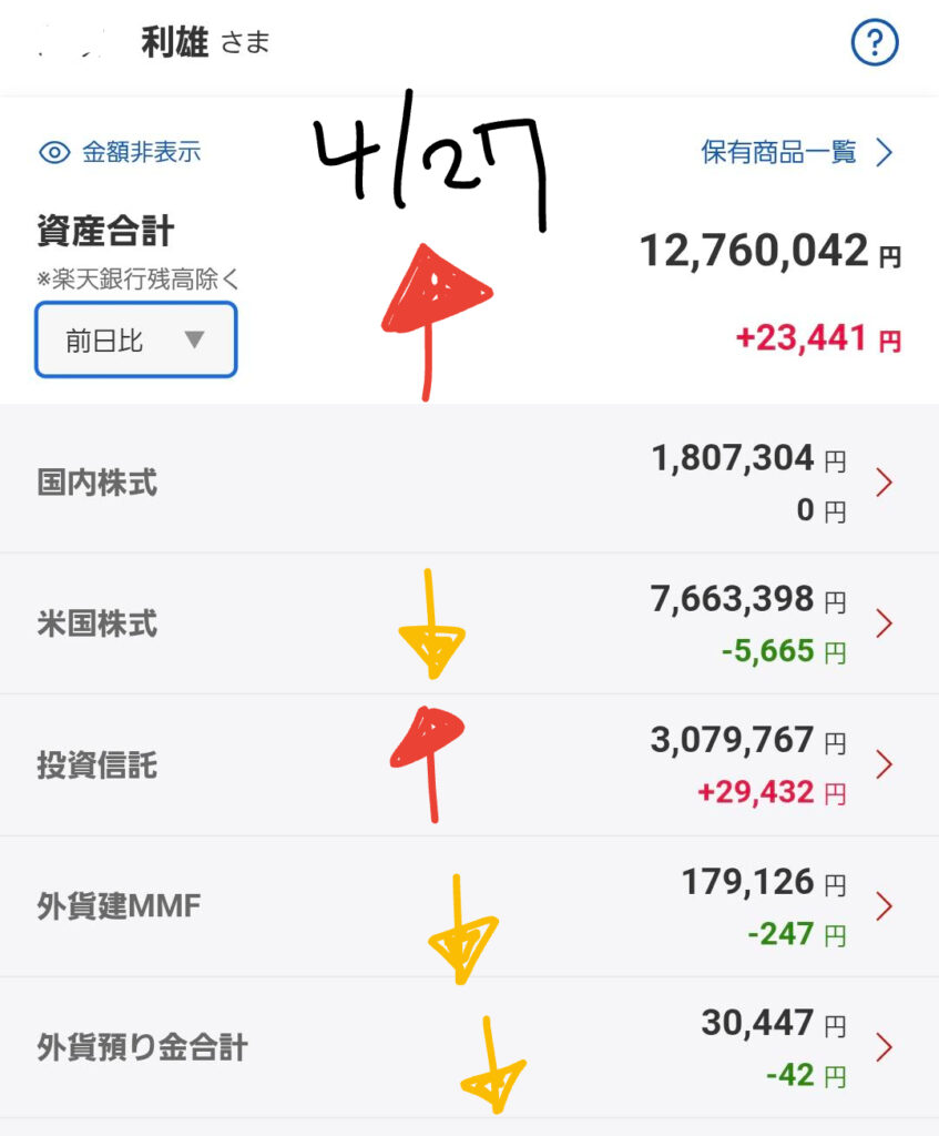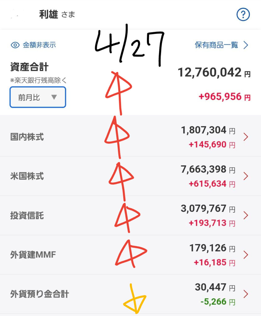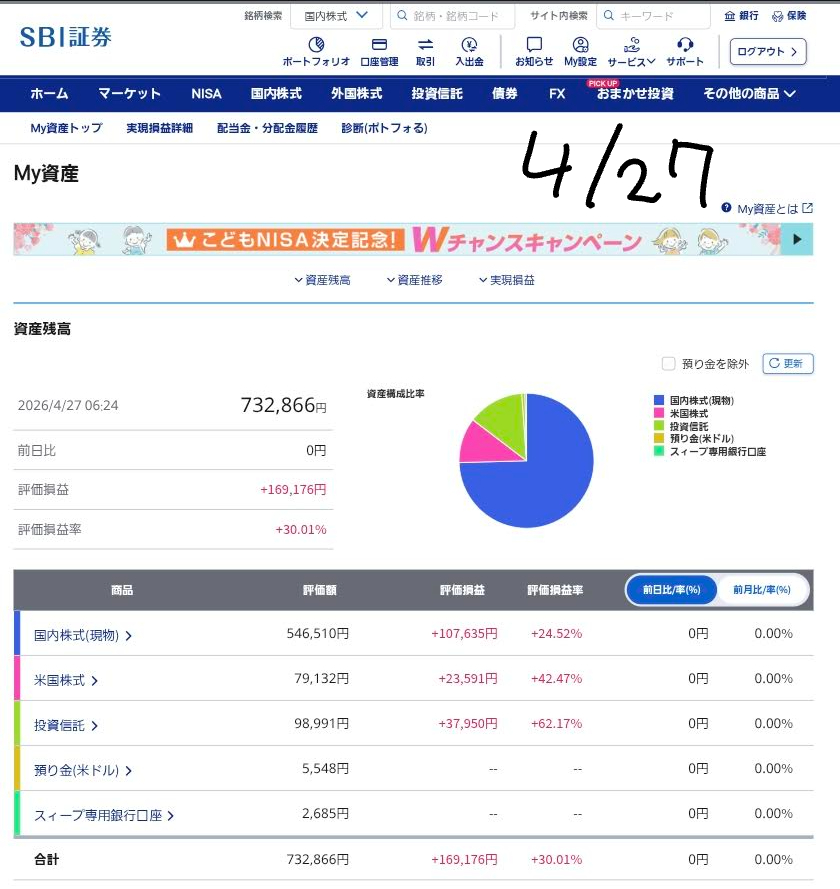 📈 今日の資産評価額と相場観測(2026/04/27)