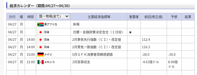 ■ 昨日の実績と直近のマーケット動向(4/27時点)