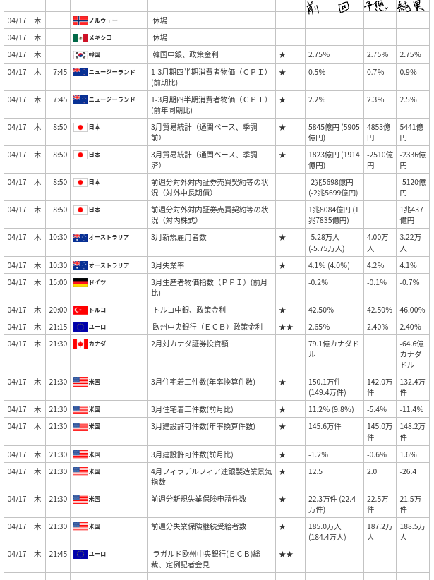 これらの経済指標の結果は、各国の経済状況を把握する上で重要な情報となります。特に、ニュージーランドのインフレ指標の上振れ、トルコの予想外の利上げ、米国の住宅着工件数の大幅な減少と製造業景況感の悪化などが注目されました。
