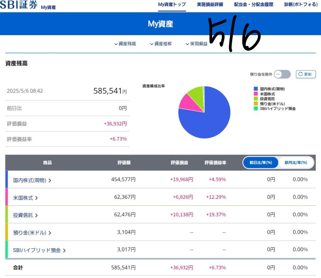 日本は休場ですので、基本の増減はほぼ無いとは思いますが、米国は開場しており、米国株が下げて終えています。更に為替144⇒143と円高に終えておりその影響も受けて総資産は減っております。