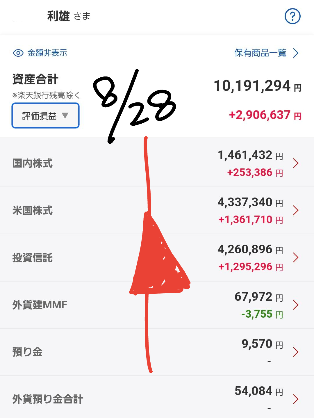 - 投資信託: 資産額は426万896円で、前日比プラス1万8,044円でした。投資信託は分散投資の効果もあり、安定して資産を増やしてくれています。