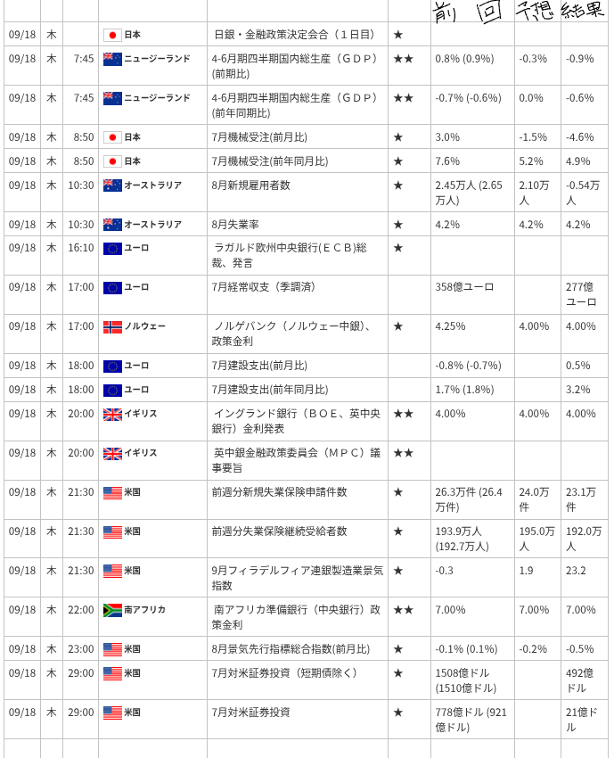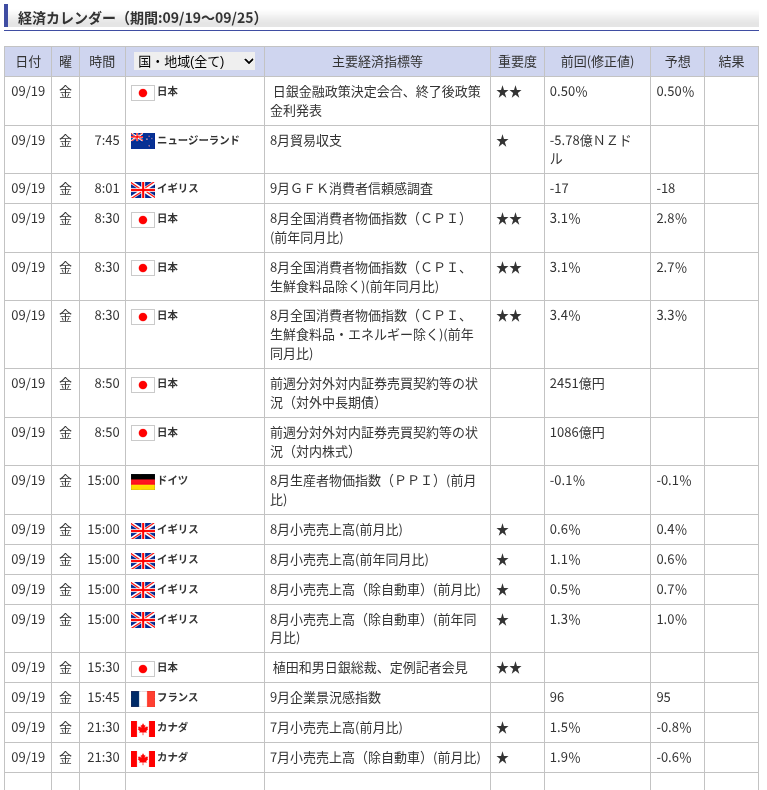 - 9月フィラデルフィア連銀製造業景気指数: 地域の製造業の景気動向を示します。