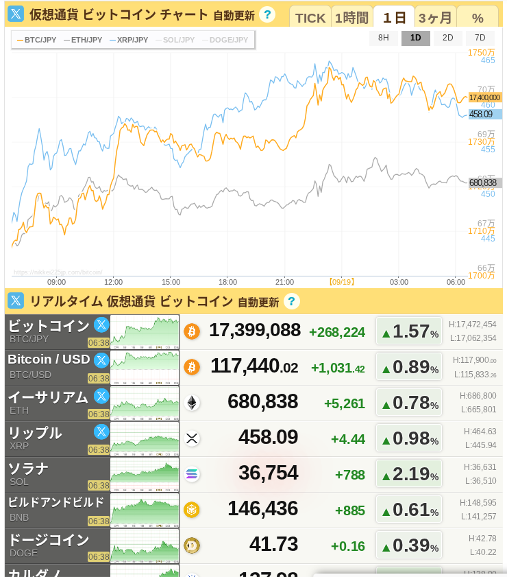 今回の画像にはビットコインのポートフォリオも含まれていますね。 ビットコインは昨日一日で**+1.57%**と大きく上昇しました。これは株式市場のリスクオンムードが、仮想通貨市場にも波及したためと考えられます。