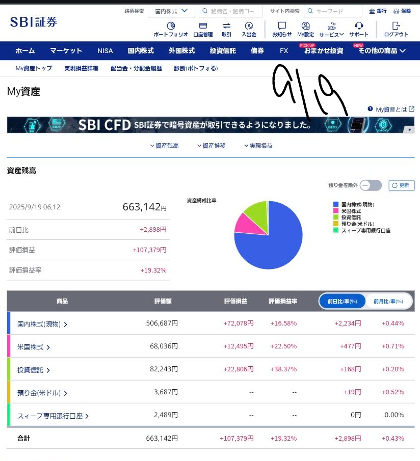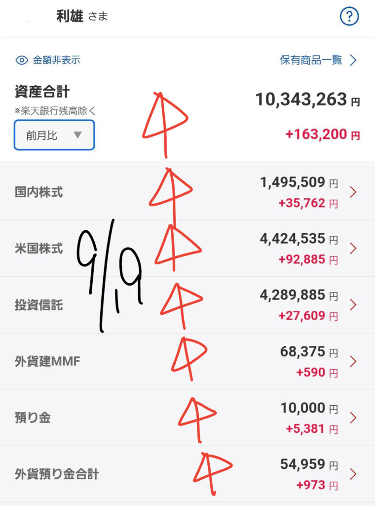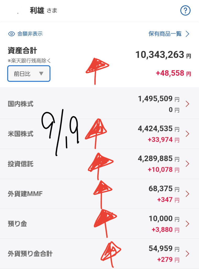 昨日の好調な市場のおかげで、しっかりと資産が増えてくれました。