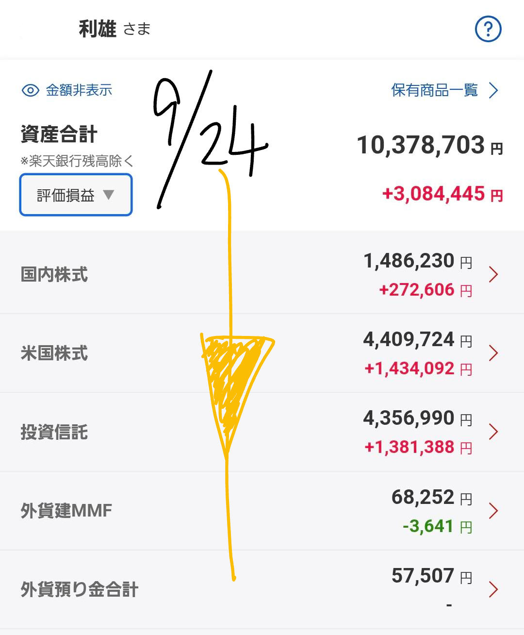 9月24日(水)の僕のポートフォリオを公開します。昨日の市場の動きを踏まえ、現在の状況と今後の見通しについて、皆さんと一緒に見ていきましょう。