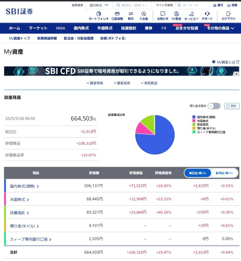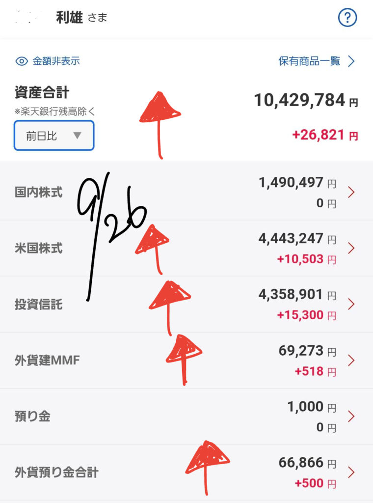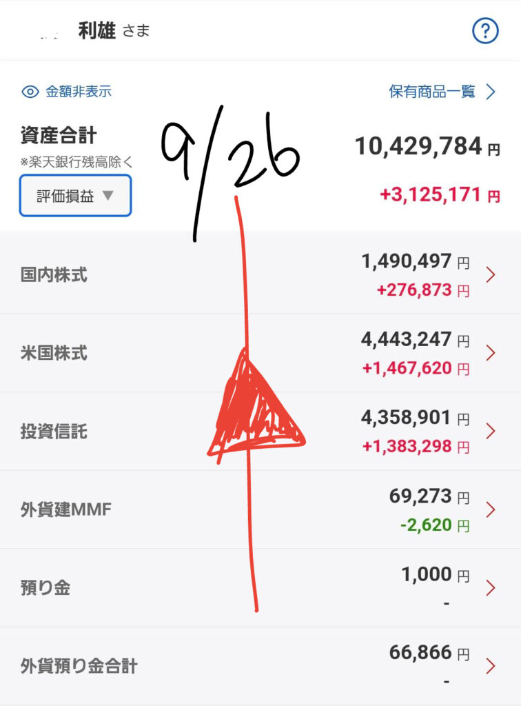 今日は9月26日、僕のポートフォリオの最新状況を皆さんにお届けします。 昨日の米国市場の力強い動きを受けて、今日は僕の資産も大きく変動しました。 さっそく見ていきましょう!