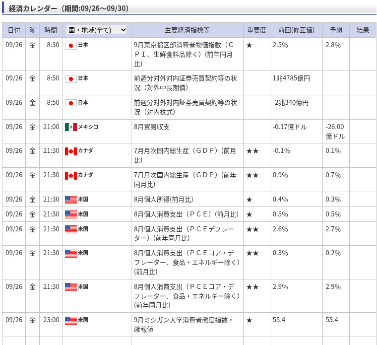 - 解説: FRBがインフレ動向を判断する上で重視する指標です。予想をわずかに上回り、物価上昇圧力がやや強めであることが示唆されました。この結果は、FRBの利下げ観測にブレーキをかける要因となり得ます。