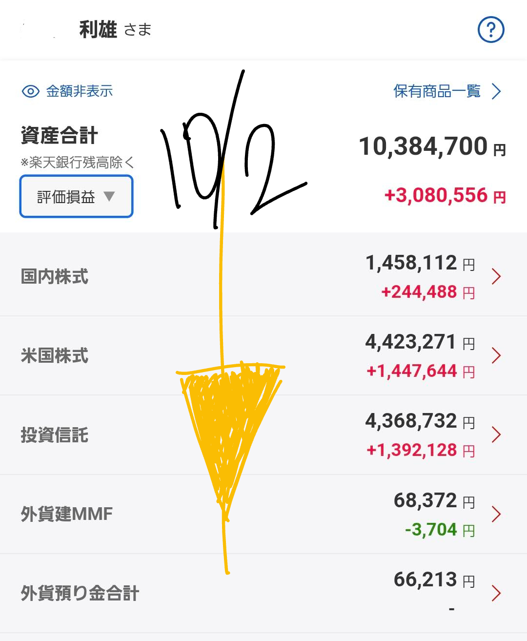 まず、昨日の終値を反映した時点での僕の資産状況です。