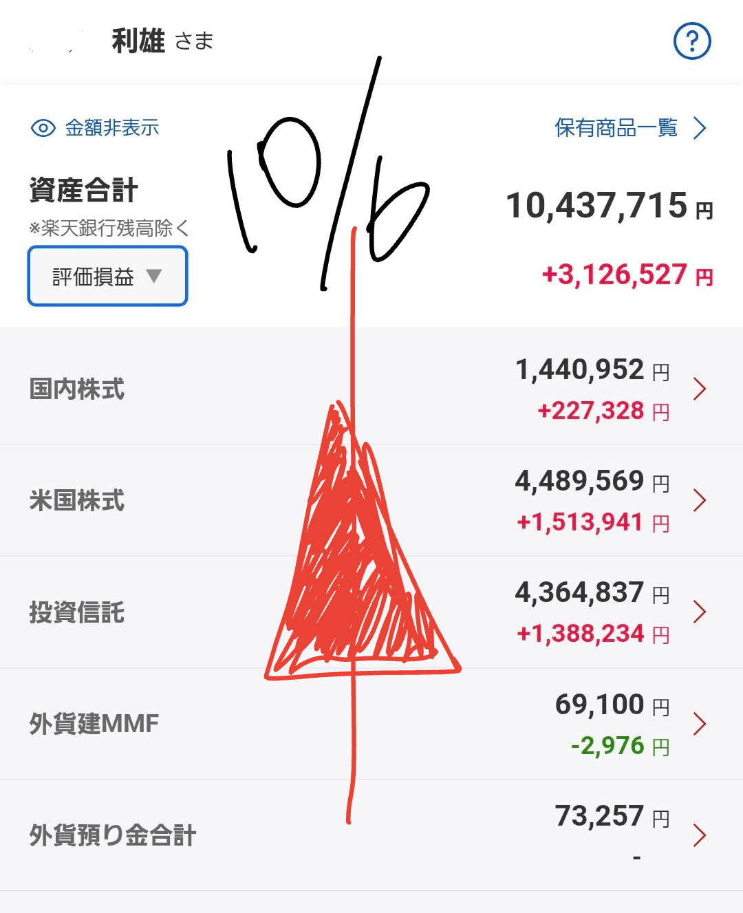 皆さん、注目してください! 昨日は金曜日(10/3)の米国市場での取引を終えて、私の資産合計は**+67,411円**と、プラスで終えることができました!