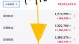 - 国内株式の暴落懸念:政局不安は国内株の最大の重しです。日経先物の下げ幅から見ても、週明けの国内市場は大幅な下窓を開けて始まる恐れがあり、私の国内株式(120万円超)も大きく評価を落とすことが予想されます。