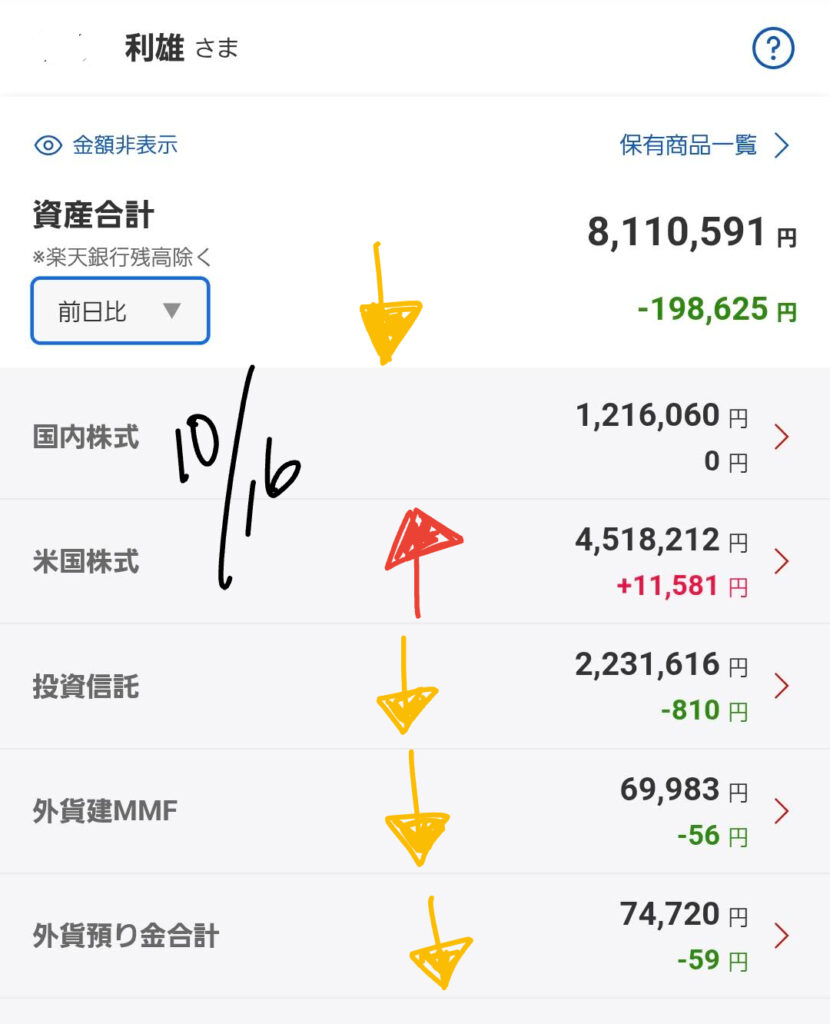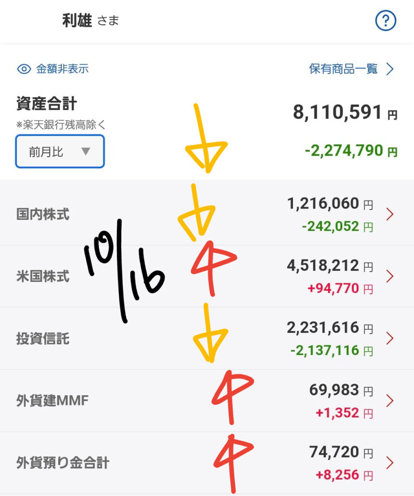 【10/16公開】私のポートフォリオ大公開!米国株の強さが光るも、前日比マイナスとなった理由とは?