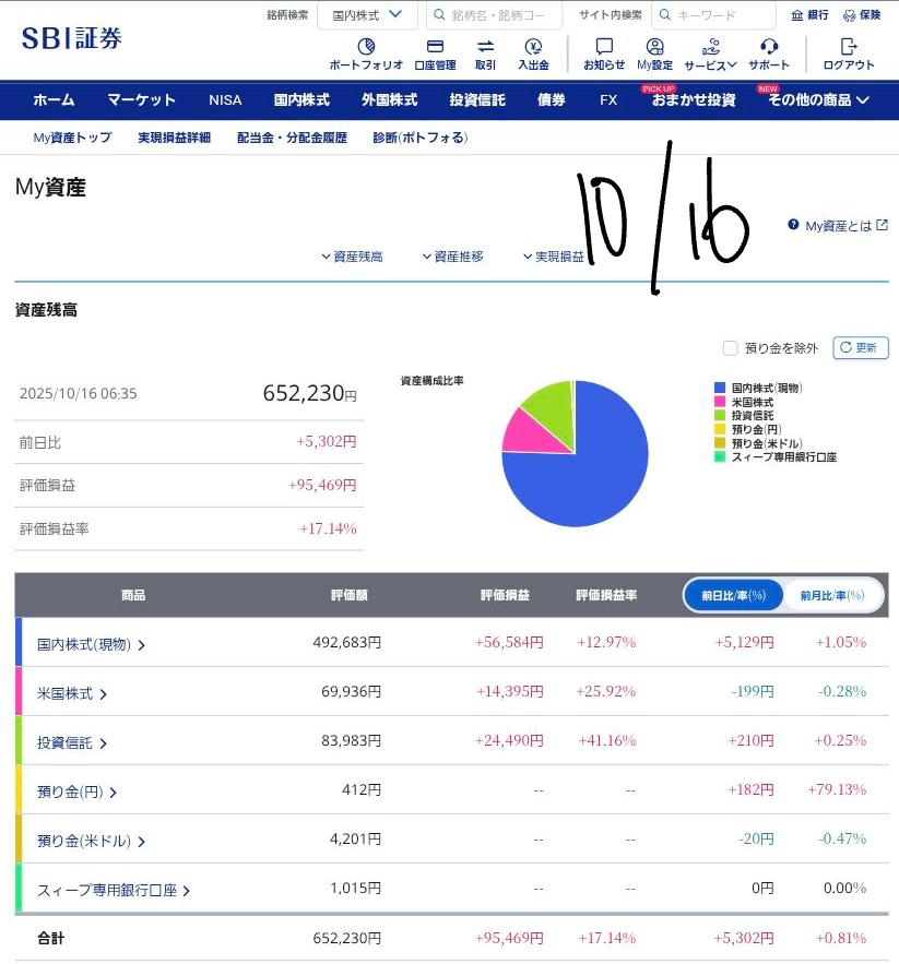 📊 10月16日(木)朝時点のポートフォリオ概要