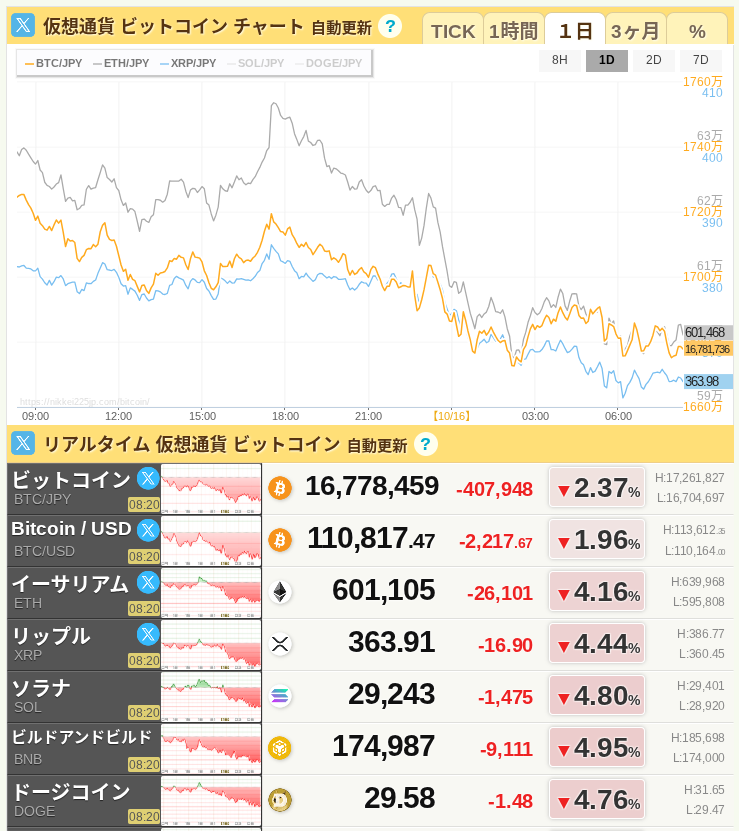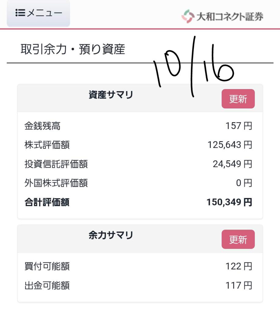 項目 | 資産合計 | 前日比(10/15 → 10/16) |