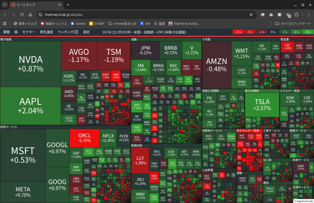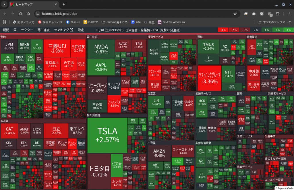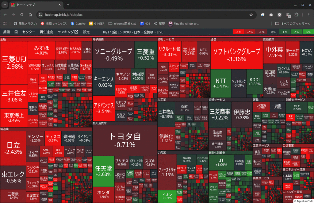 ≪株価ヒートマップ≫10/17と10/18のヒートマップ