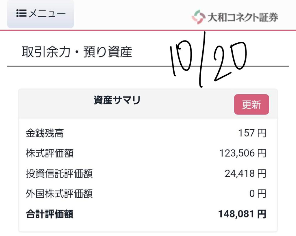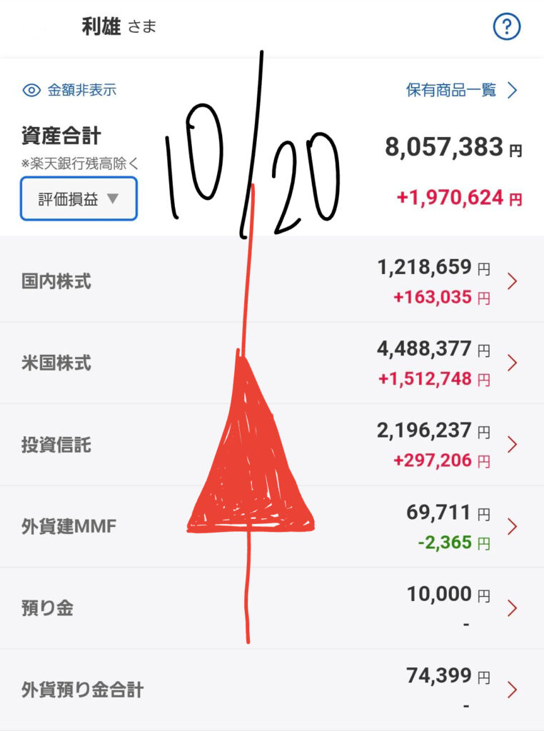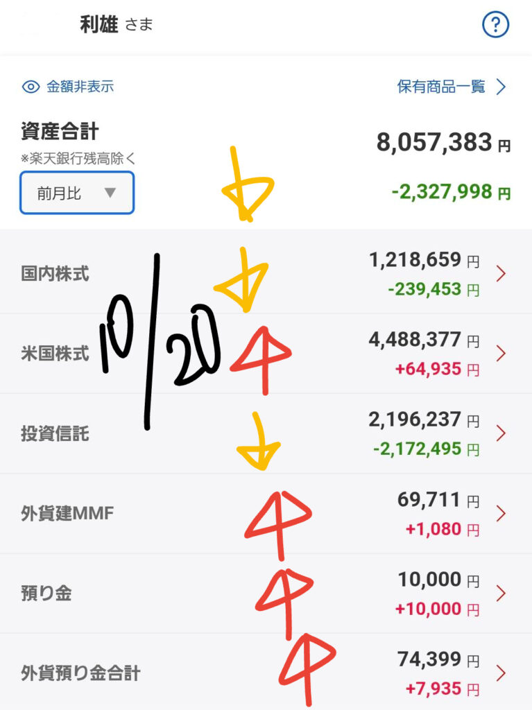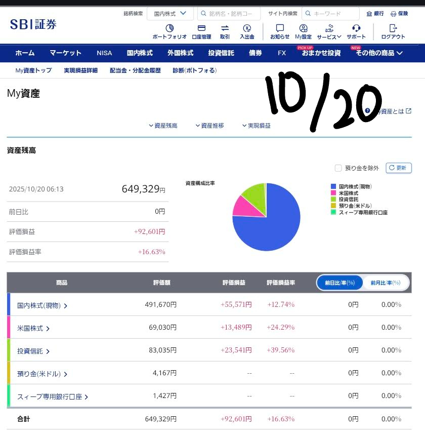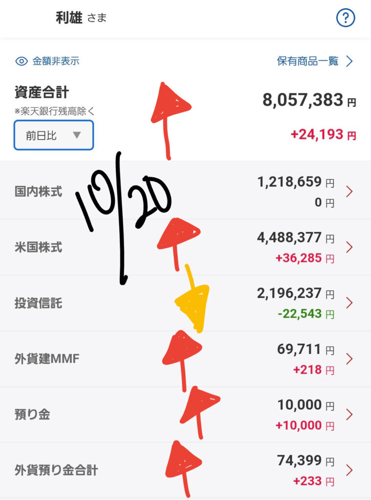 📈 現状の資産状況と前日比(10/20朝時点)