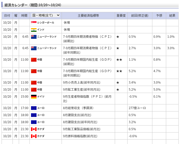 • ポイント: 10/20発表の中国7-9月期GDP(前年同期比5.2%)が市場予想(4.7%)を大きく上回りました。