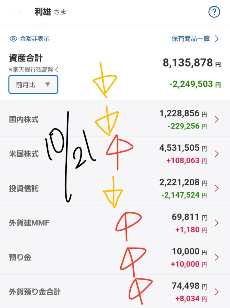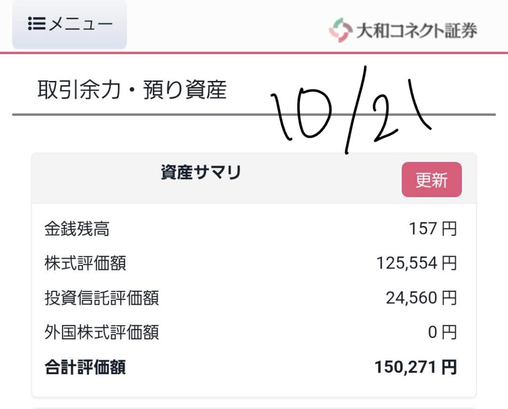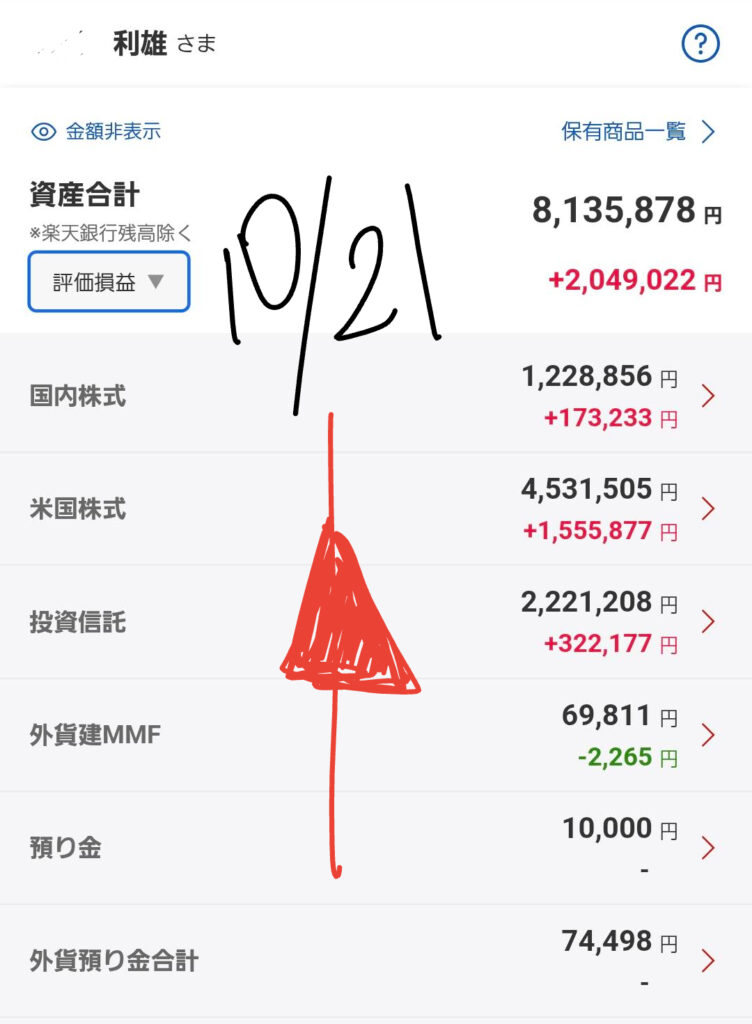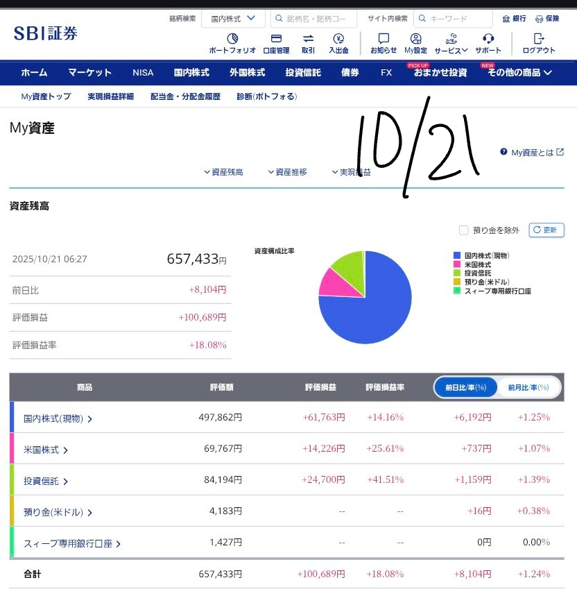 10月21日(火)朝時点の私のポートフォリオの状況をお伝えしていきます。