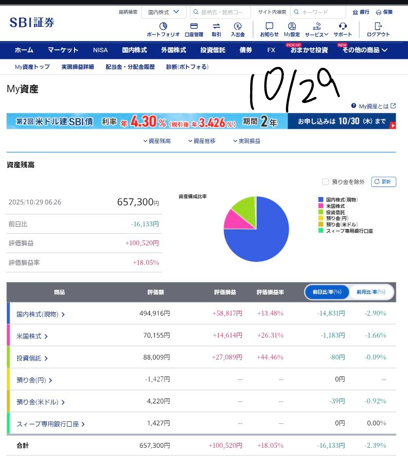 本日10月29日時点の私のポートフォリオの状況と、昨日の経済指標の結果を踏まえた今後の見通しについて、詳しくお話ししていきます。