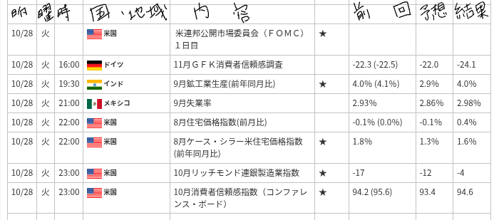 10月28日(火)に発表された主要経済指標は、米国指標の堅調さが目立つ結果となりました。