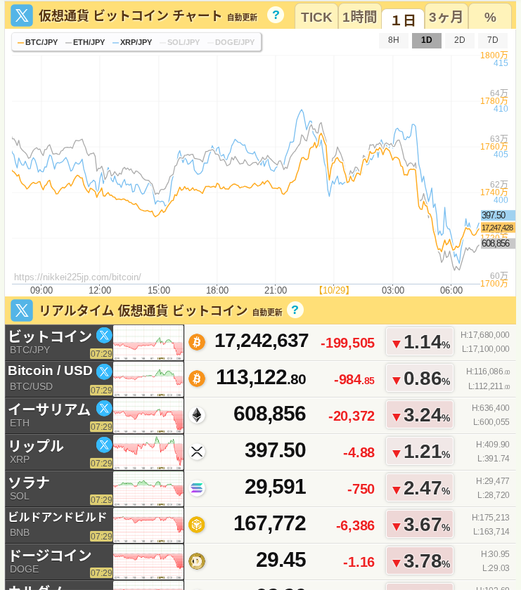 ここからは、皆さんが一番気になる**「昨日からどう動いたか」**、つまり10月29日(水)の前日比の状況をメインにお伝えします。