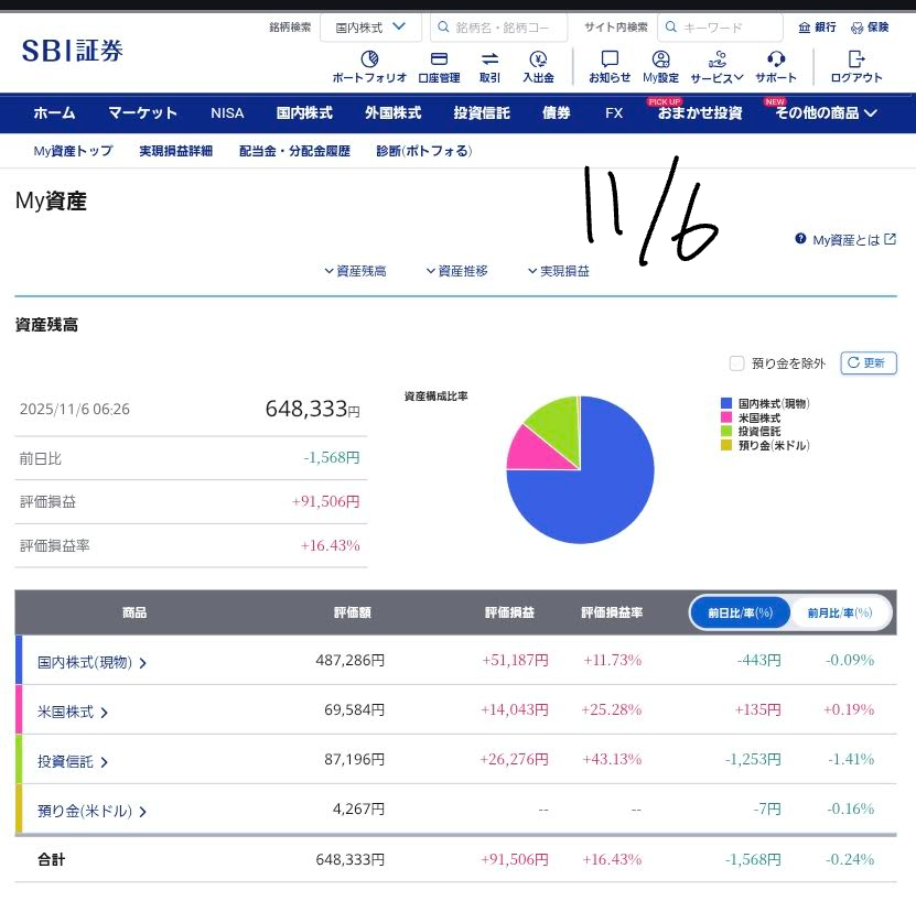📈 11月6日 ポートフォリオ公開!昨日の相場はどう動いた?