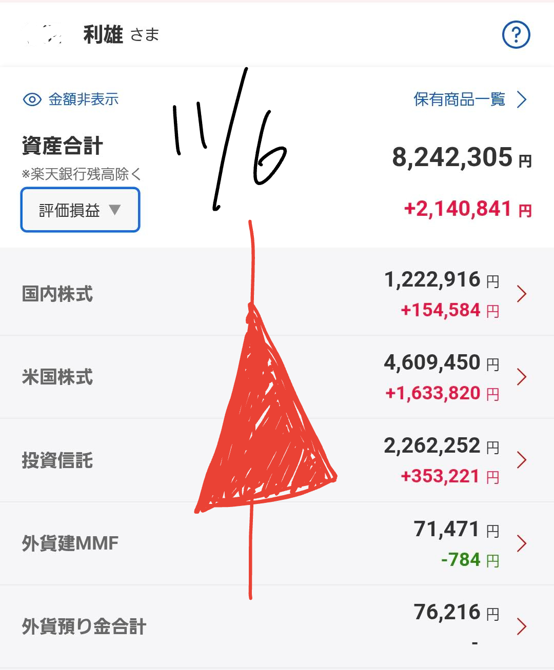 🚀 楽天証券(11月6日 評価額:8,242,305円)