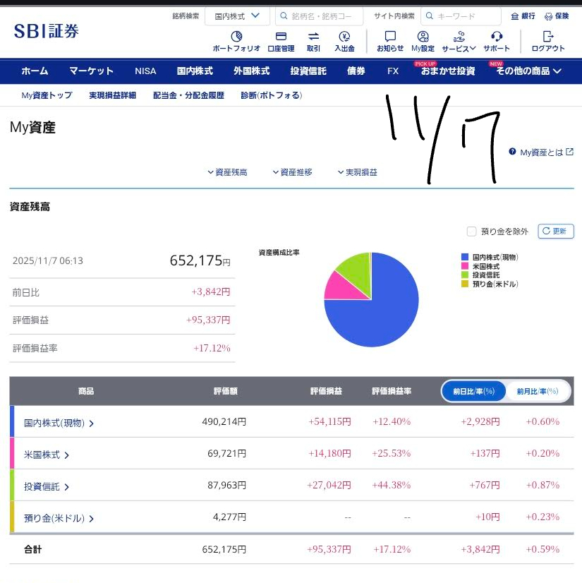 🚨 11月7日朝時点:私の資産状況(前日比)