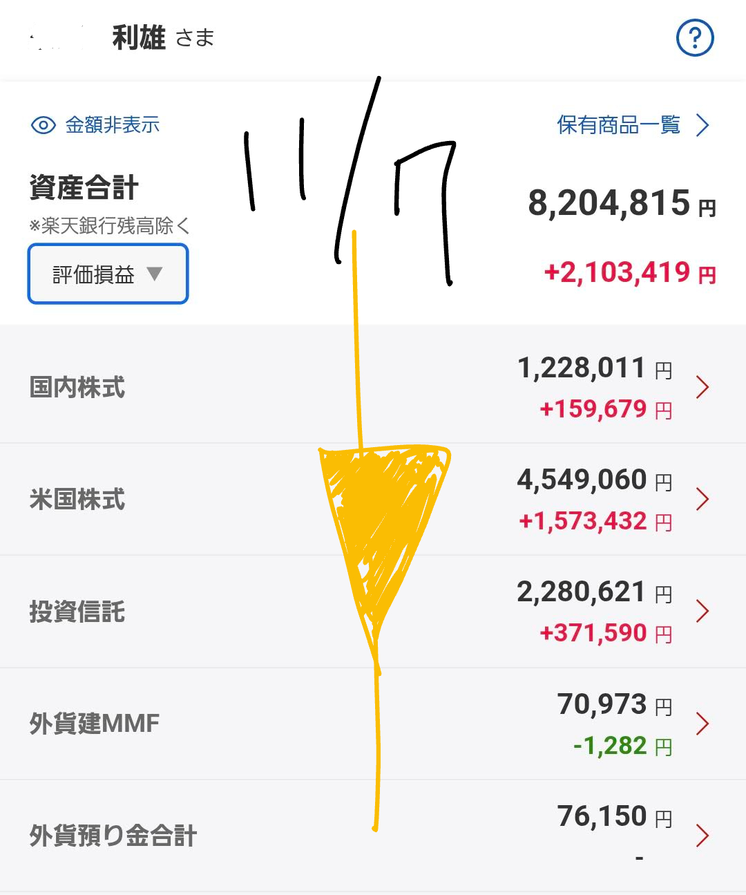 🚨 11月7日朝時点:私の資産状況(前日比)