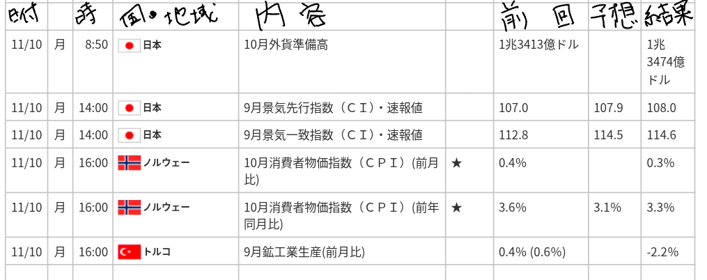 10月 消費者物価指数 (CPI) (前年同月比)16:003.6%3.3%3.3%予想と一致
