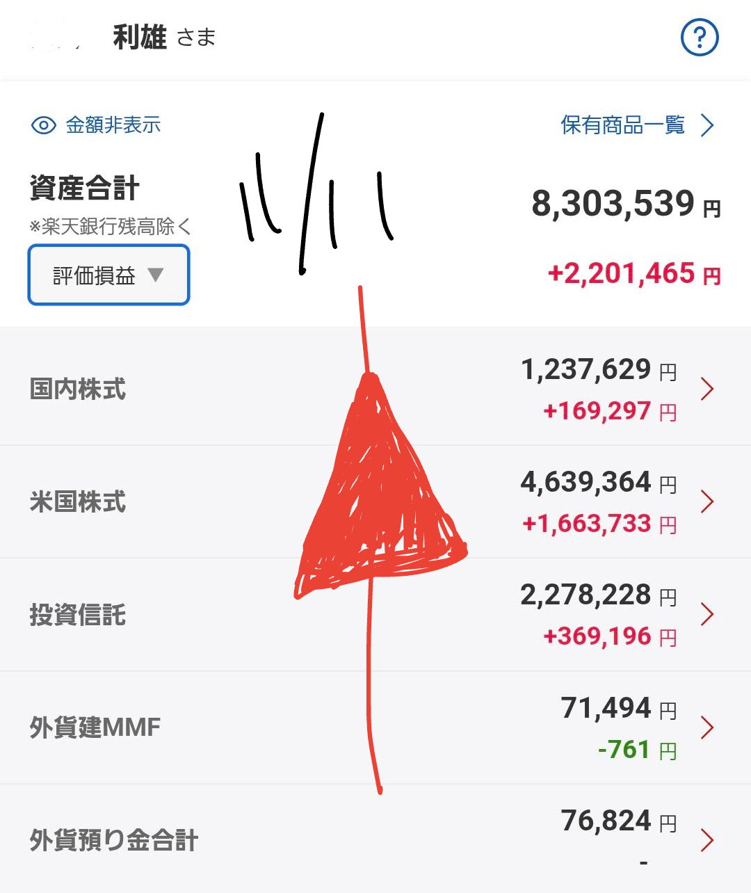 最後に、私の現在の資産全体の評価額と、これまでの投資の成果(含み益)をご報告します。