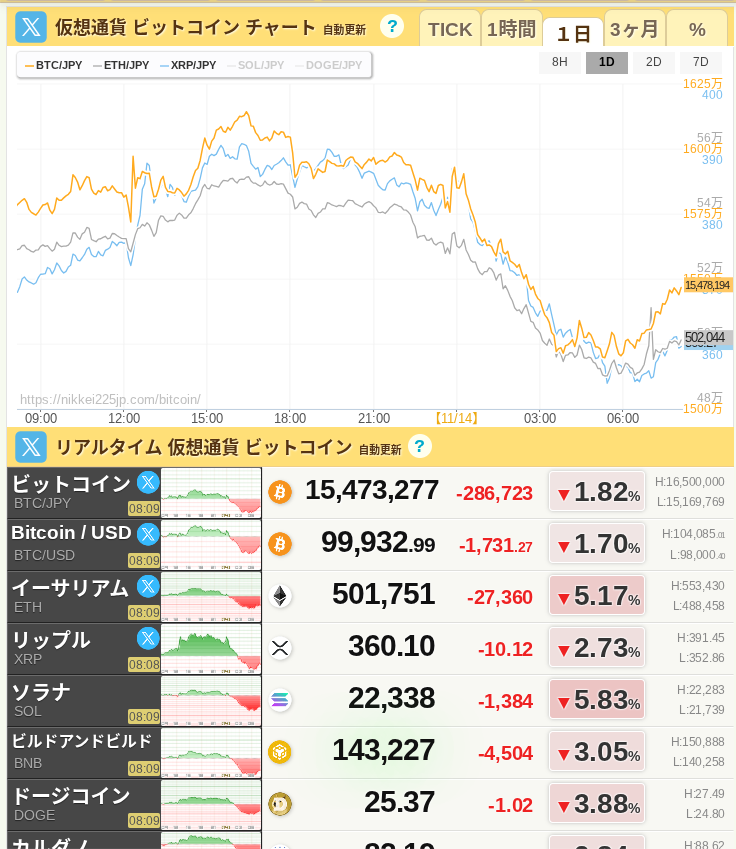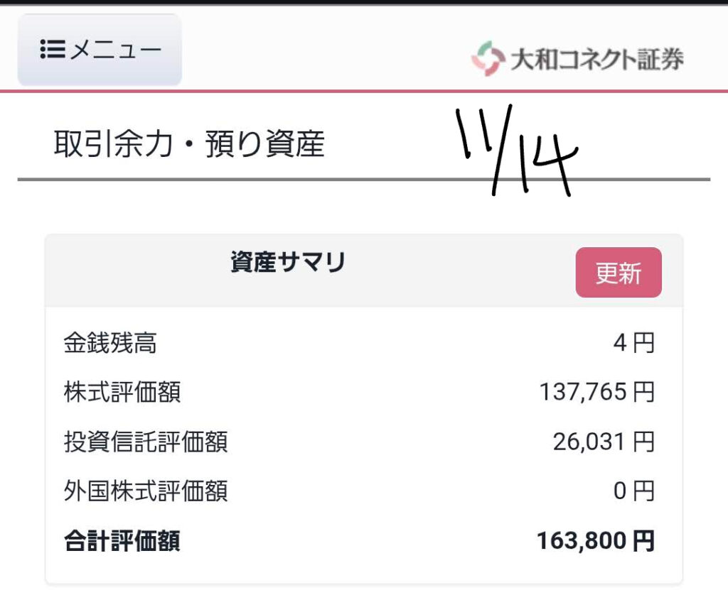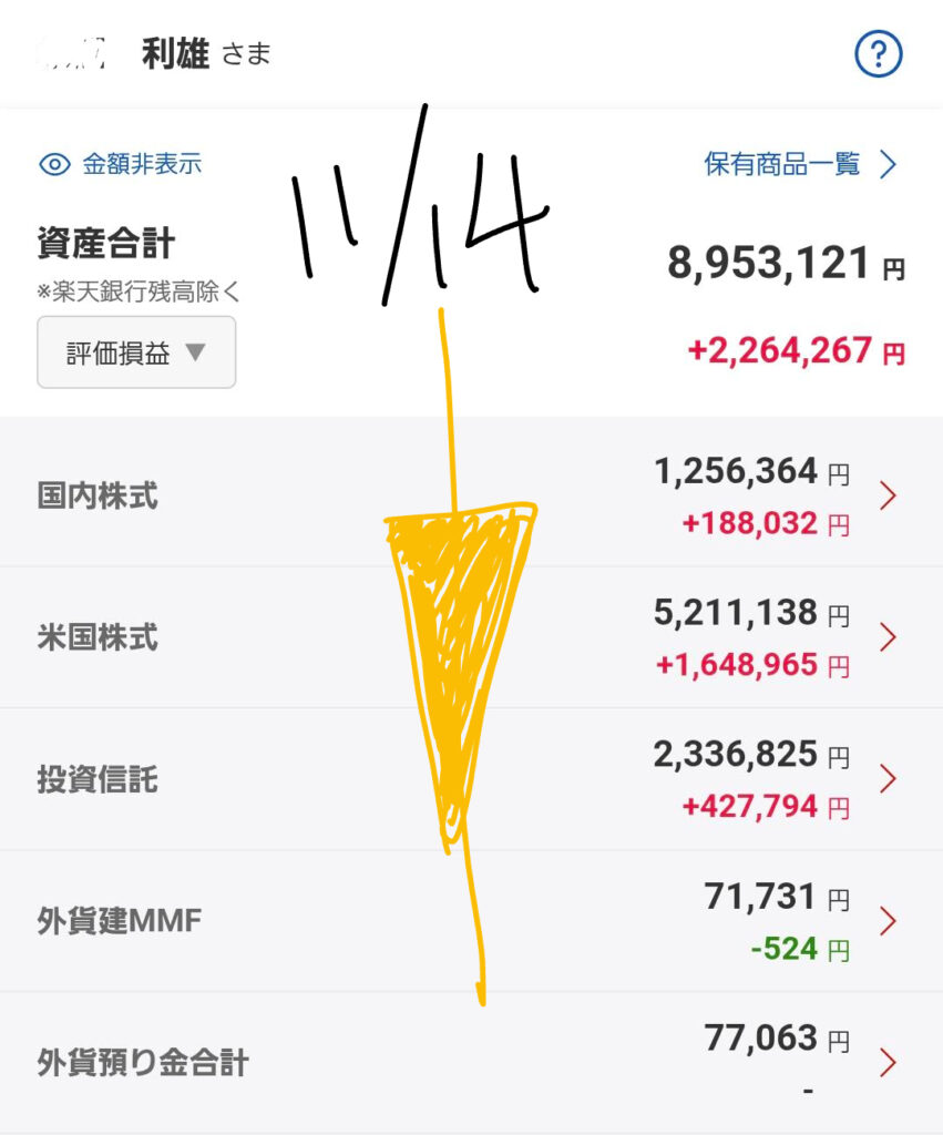 皆さま、おはようございます。投資家として活動している「私」の、11月14日午前時点の資産状況をご報告します。