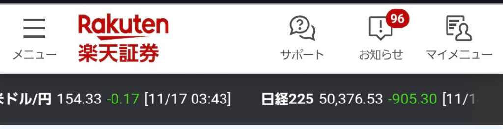 | 日経平均225(11/14終値) | 50,376.53円 | -905.30円 | ⬇️ |