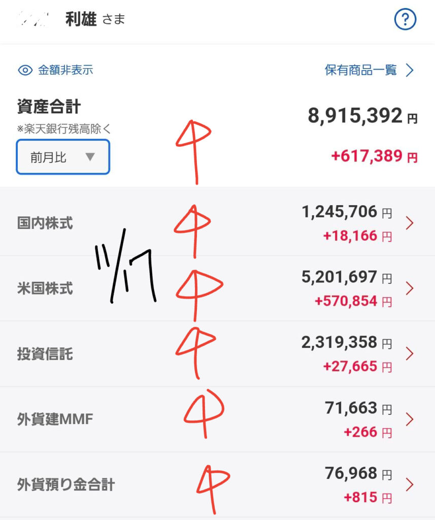 | 資産合計 | 8,915,392円 | -26,398円 | ⬇️ |