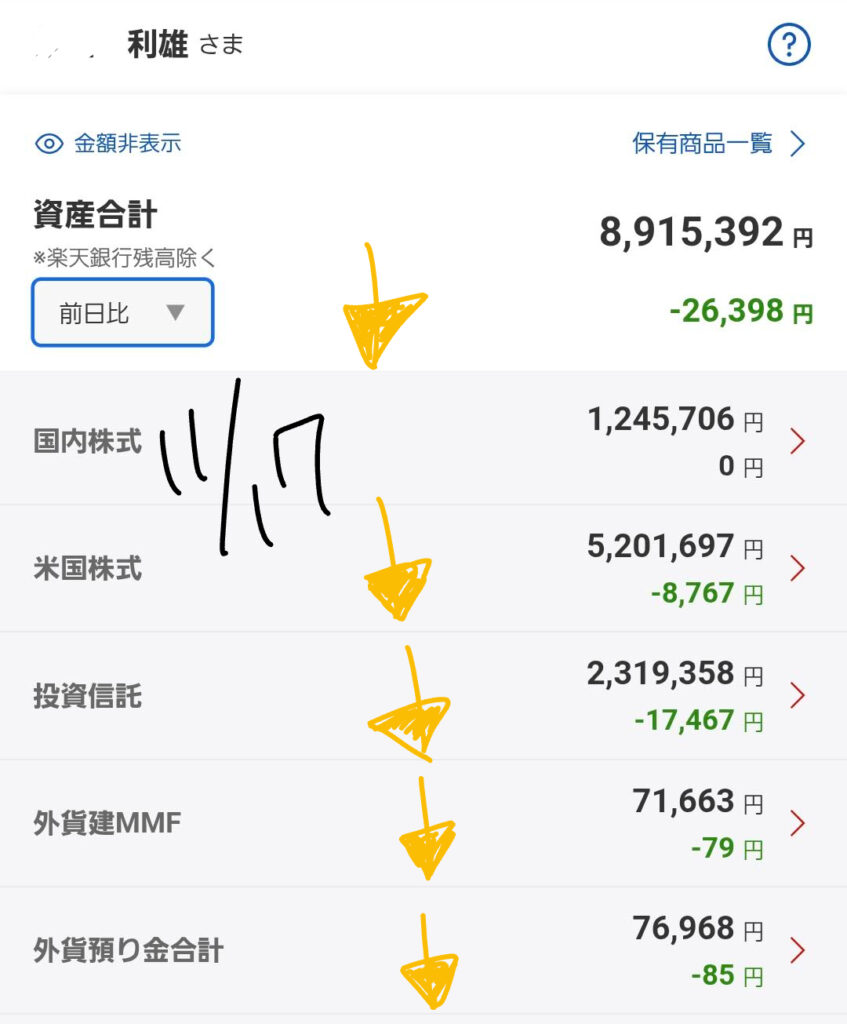 市場全体が下落傾向にある中、私のポートフォリオも影響を受け、本日は前日比でマイナスとなりました。