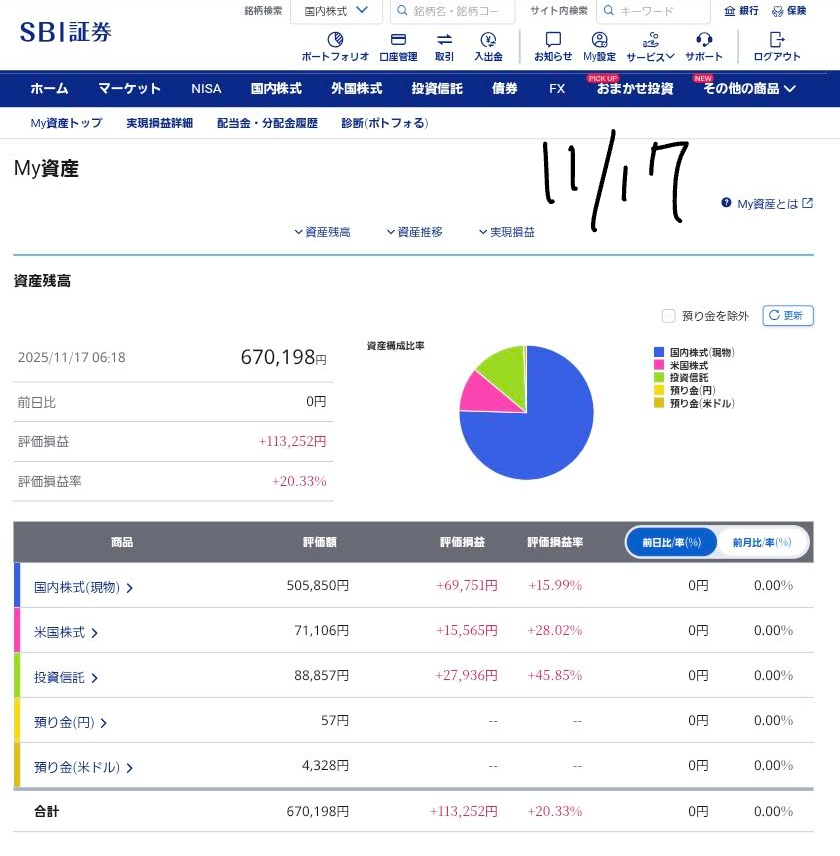 📉 リアルな損益報告:私のポートフォリオ状況(11/17)