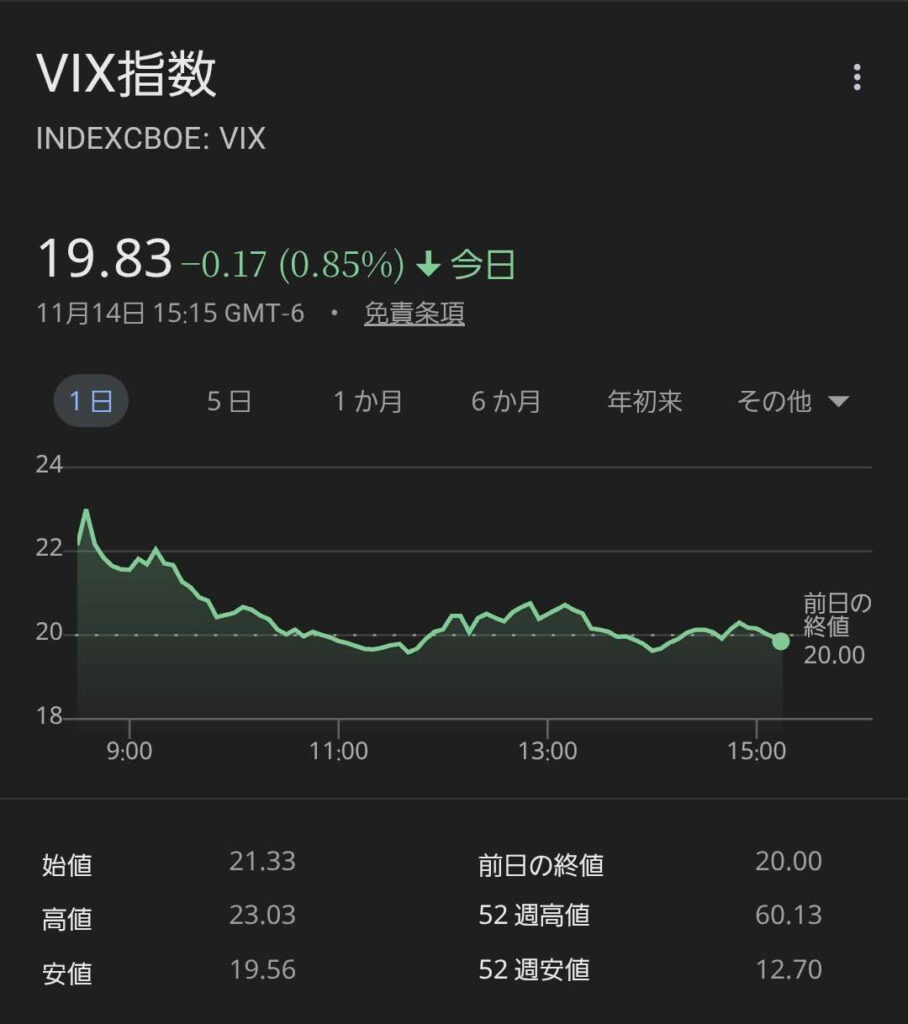 10~20⇒適正数値 30前後⇒警戒状態 40以上⇒パニック状態 ご参考までに「SMBC日興証券」さんの用語集を引用します。VIX指数とはhttps://www.smbcnikko.co.jp/terms/eng/v/E0063.html