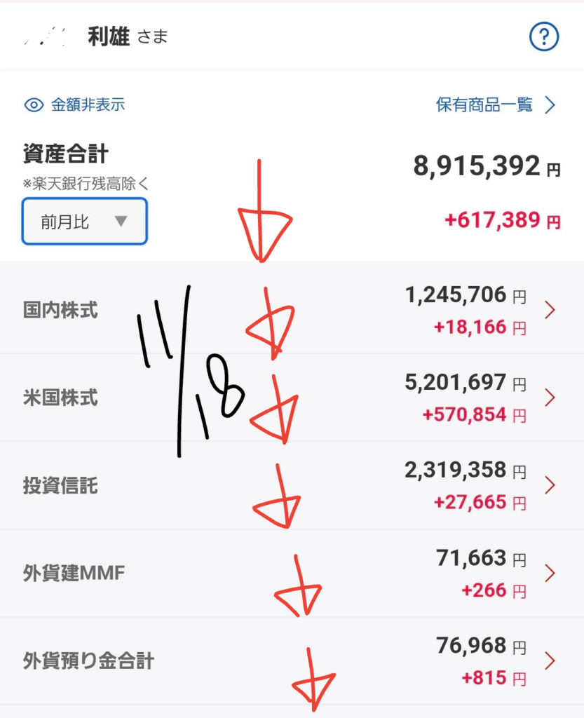 ※楽天証券のデータ(11/18)をベースとし、SBI証券・大和コネクト証券の資産も合算しています。