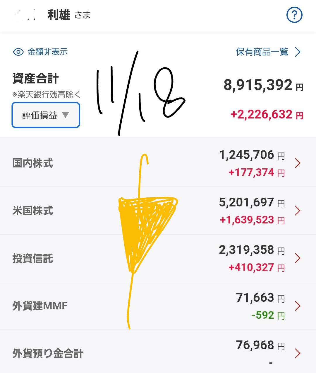 ※楽天証券のデータ(11/18)をベースとし、SBI証券・大和コネクト証券の資産も合算しています。